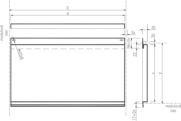 | skladebná délka D | d + Sv |