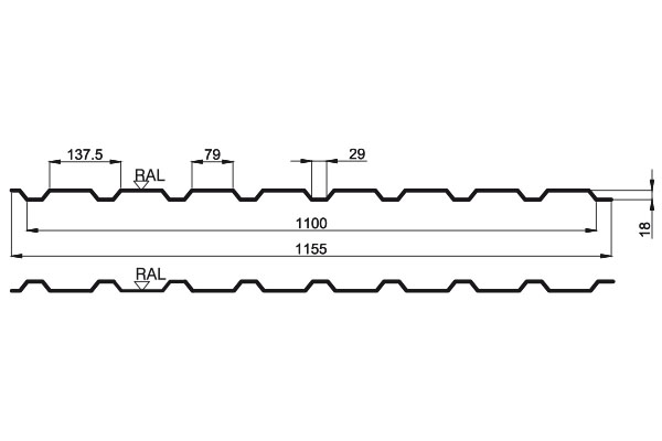 Profilované trapézové plechy TR18 mohou být dodávány v tloušťkách 0,50–0,63 mm. Materiál v tloušťce 0,5 mm skladem ve 25 barevných variantách ve třech povrchových úpravách. TR35 se vyrábí v tloušťkách 0,5–1,00 mm a TR50 0,63–1,00 mm.