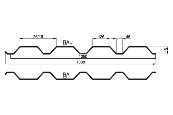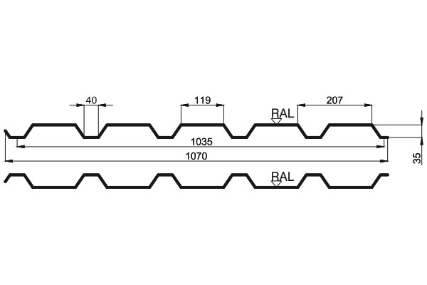 DEKPROFILE TR je trapézový plechový profil, který společnost DEKMETAL vyrábí ve třech variantách dle výšky vlny (18, 35 nebo 50 mm).Tyto profily se ve stavebnictví také používají jako střešní krytina. Základní překrytí profilu je o jednu vlnu.